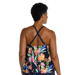 Swimsuits Womens Maxine Mystic Garden Hi-Neck Double Tier Tankini Swim Top