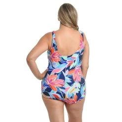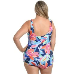 Swimsuits Plus Size Maxine Jungle Vines Shirred Front Girl Leg One Piece