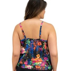 Swimsuits Plus Size Maxine Fiji Floral Ruffle Tankini Swim Top