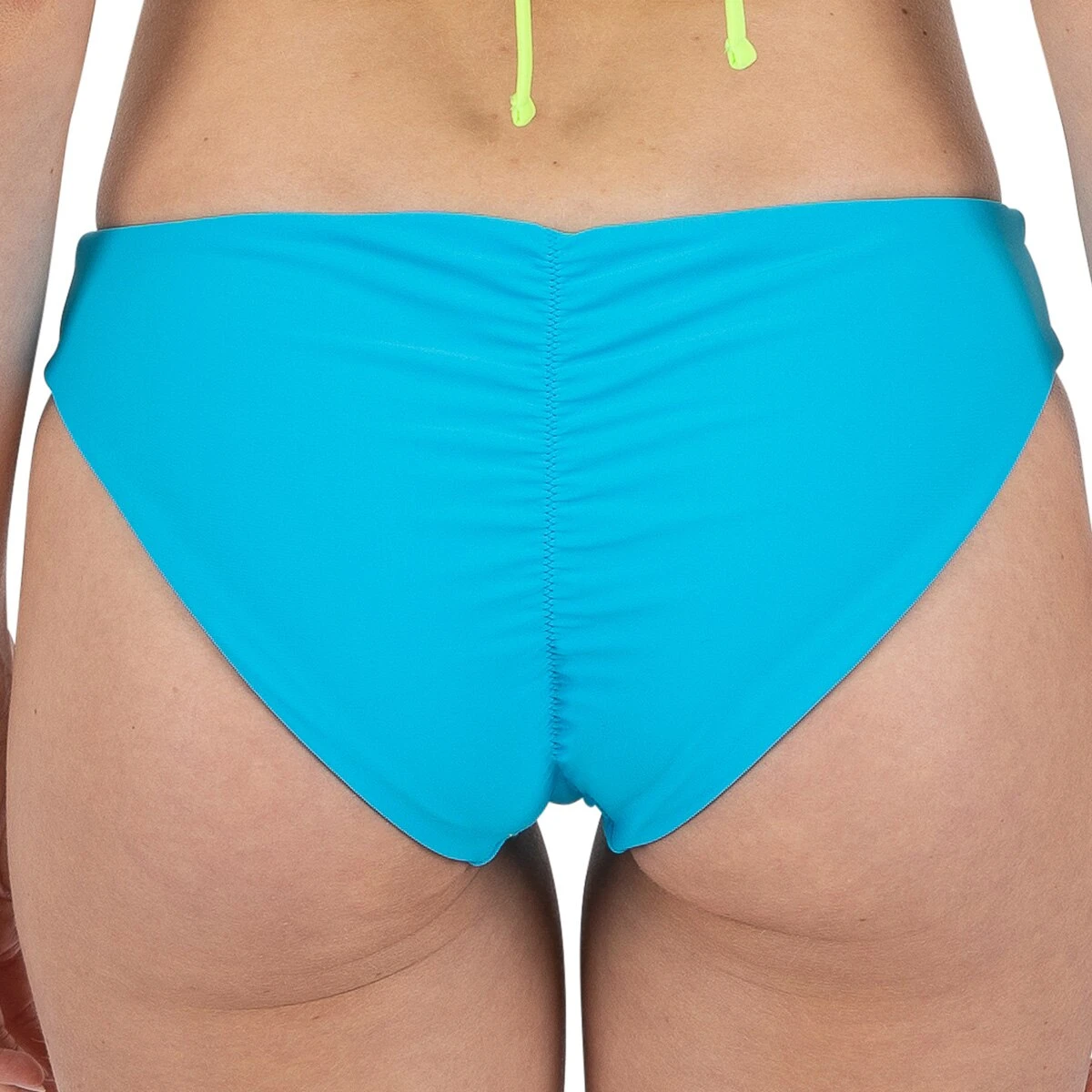 Give your swim style options with the Juniors Cyn & Luca Becky reversible ruched swim bottoms. With a choice of blue or lime green, you can pair it with your favorite swim top for a cute look.