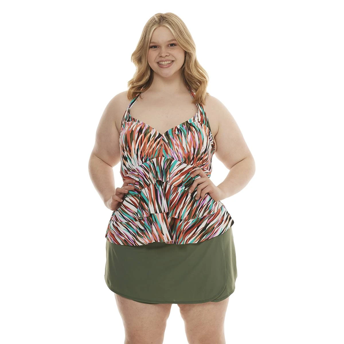 Swimsuits Plus Size Cazimi Halter Ruffle Tankini Swim Top