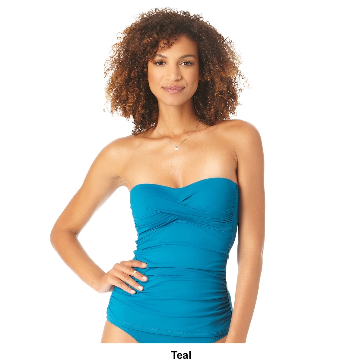Add a bright pop of color to your pool party this summer! This Womens Anne Cole bandeau swim top is a best-selling style for a reason. Its flattering twisted front and shirred sides enhance your shape to create a va-va-voom look, while a removable strap gives you the option of two different looks. Get medium coverage while showing off your neckline and shoulders. Pair this twist front bandeau with our elegant flounce tunic cover up for a breezy poolside look!