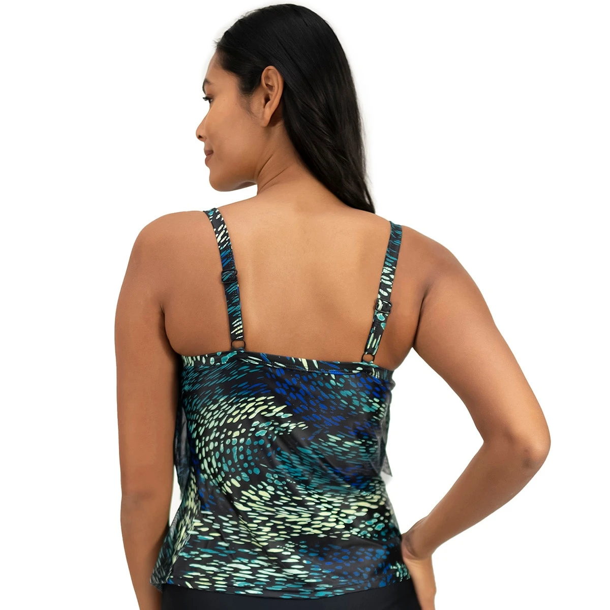With adjustable straps and 3 tiers of hankie ruffles, this Womens Del Raya tankini is read for any summer activity. Pair this swim top with any solid bottoms and enjoy your day in style.