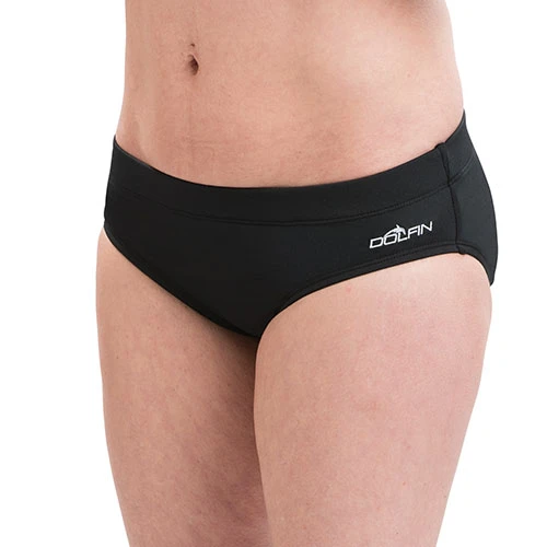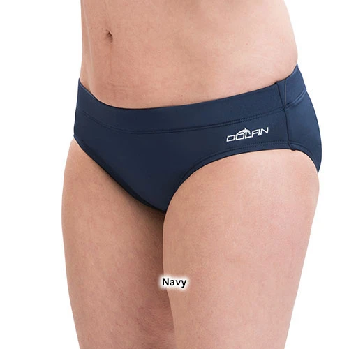 The Womens Dolfin® Aquashape contemporary swim briefs showcase an active fashion style and a wider waistband that smoots and controls. These swim bottoms are supportive and comfortable. 91% Polyester, 9% Spandex.