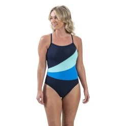 This Womens Dolfin® Aquashape moderate color block one piece swimsuit is made to help those laps in the pool go smoothly! Boost your confidence levels and strut your stuff in this one-piece suit with crisscross straps and an unbeatable fit!