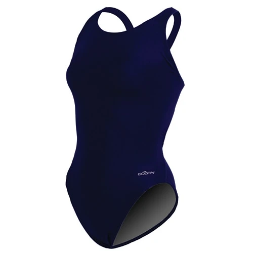 The Womens Dolfin® team solid HP navy back one piece swimsuit is a basic suit that offers comfort and durability in the Xtra Life Lycra. This suit is great for training, racing, or recreational swimming. 80% Nylon, 20% Xtra Life Lycra. Rinse in cold water. Line dry.