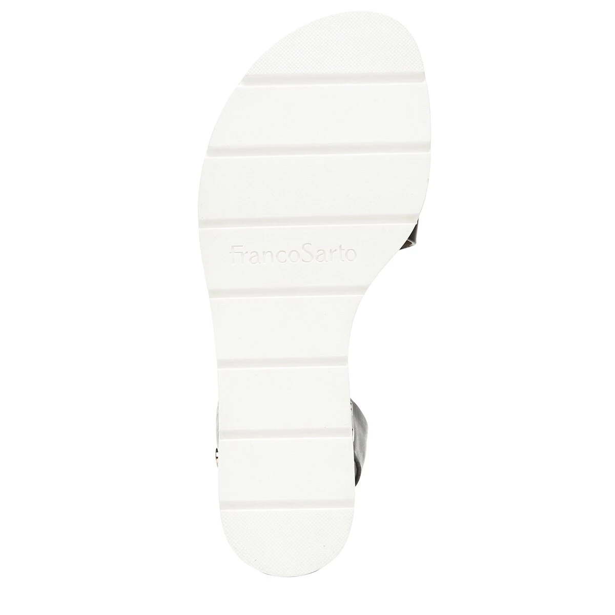 Every day is a breeze with these stunning Womens Franco Sarto L-Daven elevated flip flop sandals. They have a faux leather upper and a synthetic outsole. The gladiator sandals feature an open toe with toe ring detail, asymmetrical straps, metallic studs, adjustable straps with Velcro closure, and contrasting white soles with a cork inset wedge.Also available in Wide Widths.